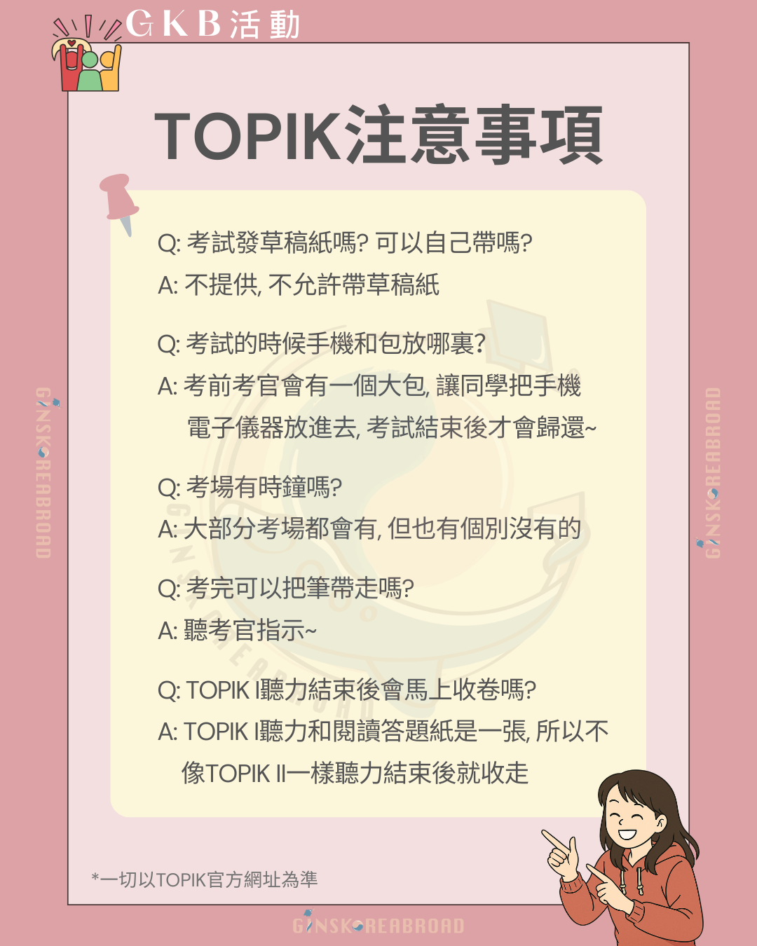 GKB 提提你之 TOPIK 考試時間、必帶物品及注意事項
