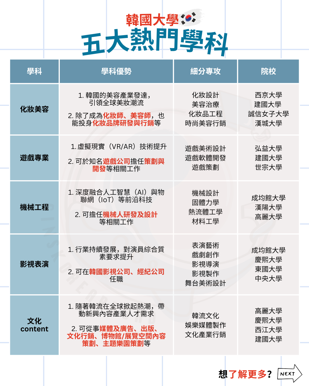 韓國大學學科哪麼多,怎樣選呢?