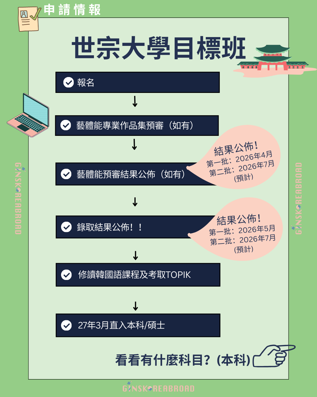 2027年3月入學:世宗大學目標班 直入本科或大學院