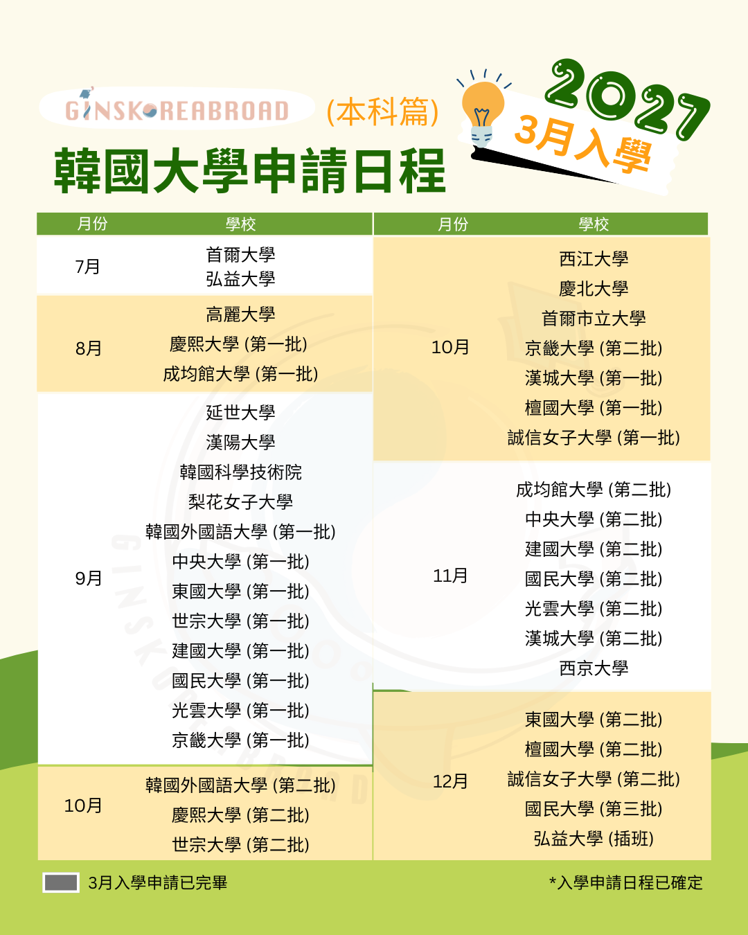 9月入學開始報名啦! 預告2027年3月韓國大學本科申請日程