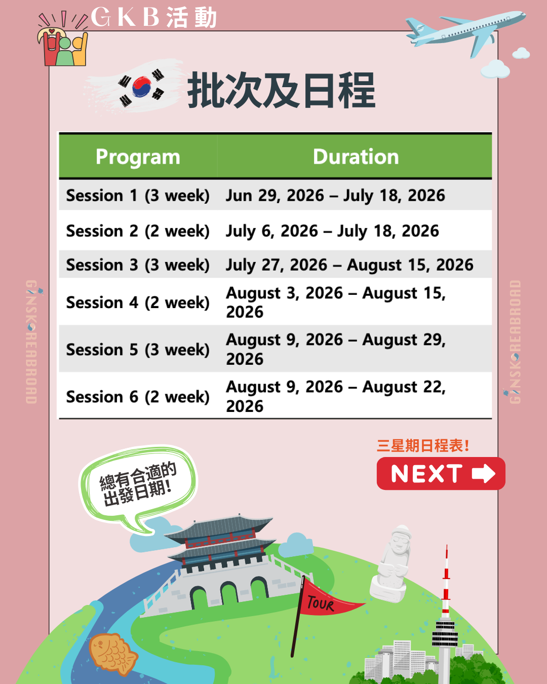 如活動有任何更改或更新,將透過 Ginskoreabroad 社交媒體公佈,請緊密留意我們。